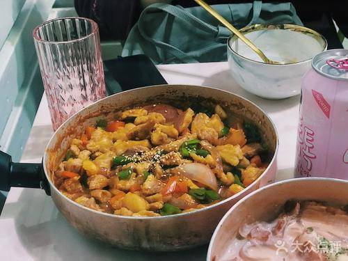這是一家粉紅、粉紅、哪哪都是粉紅色的店,老闆是個中文很溜很健談的韓國歐巴。店裏的這些個裝修色調,包括飾品的選擇,全都是出自他一人之手。這裏做的也是一些大家常見的韓國料理,像是什麼大醬湯、韓國拌飯、烤肉、火雞面......雖説不是什麼稀罕菜,但每個菜品的醬料都是老闆調製的,有獨特的口感,外面吃不到的哦!因為店裏就他一個人打理,並且餐點都是現點現做,一些食材也都是限量的。所以來之前記得提前網上預定,以免久等。