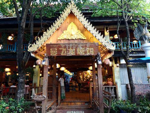 曼飛龍烤雞,位置就在告莊西雙景,從客棧走幾分鐘就到了,當地人都很喜歡來這裏,非常的受歡迎,來晚了就需要等位置了。招牌有菠蘿飯, 曼飛龍招牌烤雞,表皮烤的香脆無比,一點也不油膩,雞肉肉質是分細滑,值得推薦。