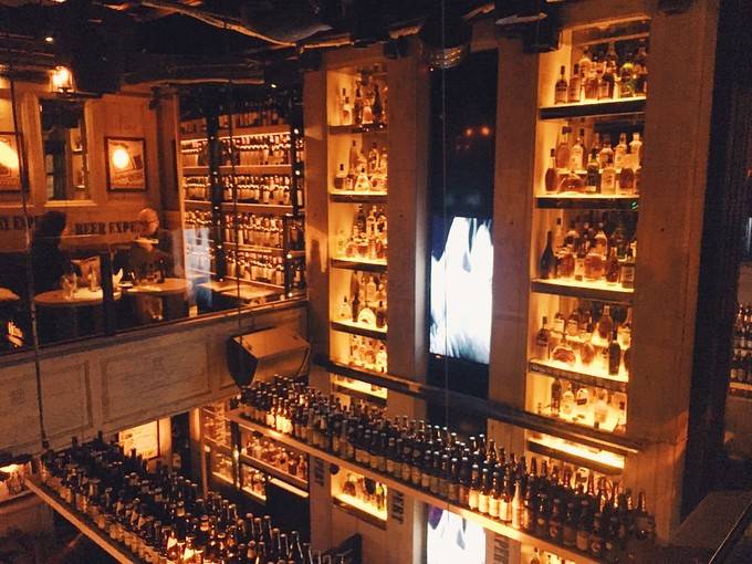 菩吧相比其他幾家酒館相對好找一些,看門口略有高端西餐吧的氣質。進門更有情調,全木質裝潢,牆壁是直通天花板的大酒櫃,擺滿了各式各樣的酒瓶。這裏的酒種類很多,你想喝什麼都可以找到。
