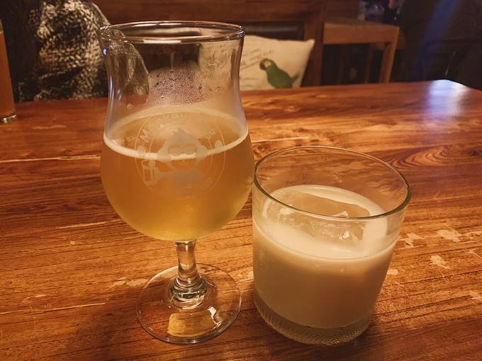 酒館的裝修比店門還樸實,沒有精緻的牆壁和桌子,沒有華麗的裝飾,水泥地板和磚柱的相隔,頗有鄉村美式悠閒悠閒的味道。名為大聖的這一款精釀,是店裏的主打款,以店名命名的酒可見不一般。大聖很受歡迎,第一次到店犯選擇恐懼症的時候點這一款就好,一喝就知道這家酒館的水平。當然還有帶有芒果香氣的IPA,能在酒花的香氣中捕捉到芒果的美好。大聖不定期還會有新品上架,每一款都值得期待,耐人品味。
