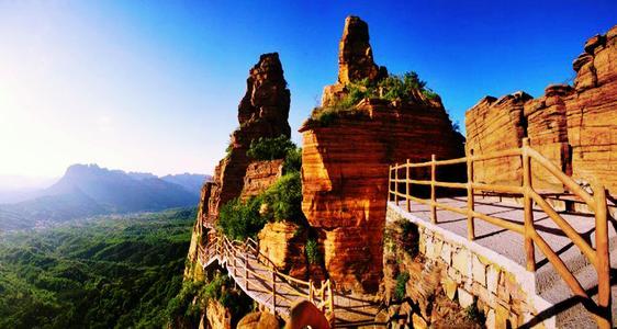 猿猴艱難攀登的崖壁上建起了一條非常險要的懸空棧道,棧道分成兩部分,下面是一個50米高的138級台階,儘管有欄杆攔住,但從狹窄的棧道上往下望去,卻有心驚肉跳的感覺。