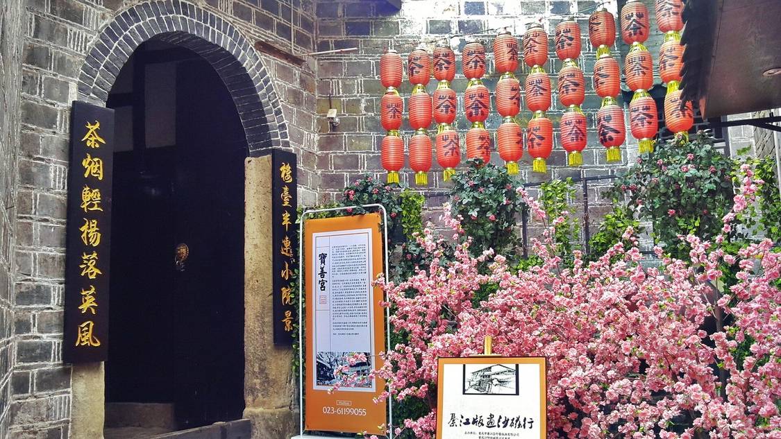 磁器口古鎮,過去有“九宮十八廟”之説,但保存至今的不多。除龍隱寺外,其餘都是寶善宮。如今,這裏已成為一家商業性的茶館,裏面還建有戲台,喜歡的朋友可以坐下來品茶,聽戲。