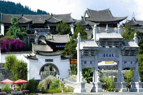 古時稱“石門井”,是雲南十大旅遊古鎮之一,也是雲南五大鹽井之一,有着千年歷史的白族村寨,這裏依山而建,民居依山而建,山腳俯瞰明清建築,層層疊疊的民居錯落有致地分佈在山坡上,村莊內可見寺院、牌坊、會館、祠堂、府第、巷道、墓園等建築,玉皇閣建築羣雄偉壯觀,閣前的欞星門是滇西現存規模最大的古木牌訪。