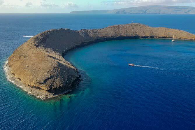 Destination for boat & rafting excursions to a volcanic atoll known for snorkeling & diving.