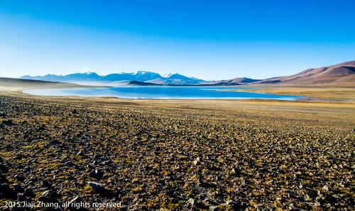 ·從崗巴拉山口遠眺羊卓雍措,湖泊在不同時段呈現出不同層次的藍色,這種變化極其豐富。它來自於四周念青唐古拉山脈的雪水,隨着光線的變化,湖水呈現出千變萬化的藍色。