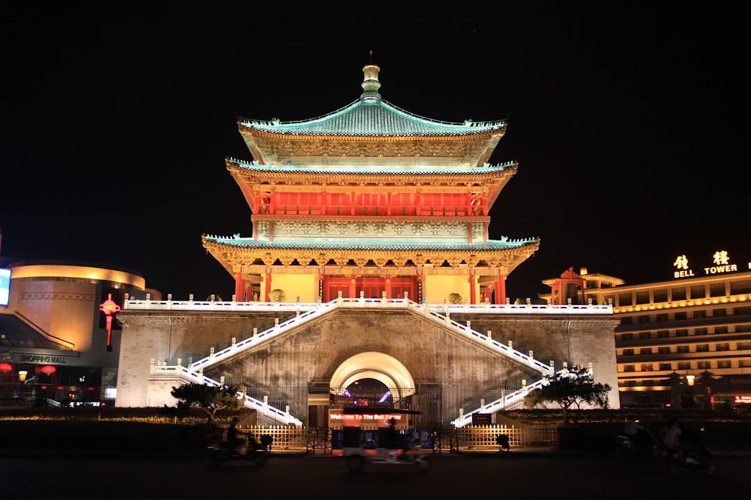 位於西安市中心的古代鐘樓建築,夜間點燈後的景象尤為美麗。與鼓樓一起成為西安的地標,且與周邊商業區的接近性佳,是常見的夜景散步路線。