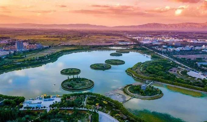 位於張掖市縣府北街北端,始建於1984年,佔地面積299畝。南北中軸線上各開一園門。南門為正門,前接縣府北街,北門前臨環城北路,兩門內由寬甬道連通。甬道上,南連蔭牆,北建拱橋,東西二湖在橋下相通。