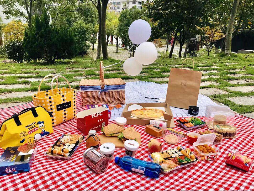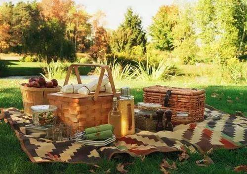 四周都散發著幽幽清香,還有晴朗湛藍的藍天,在這個背景下,野餐也變得更好有意境了