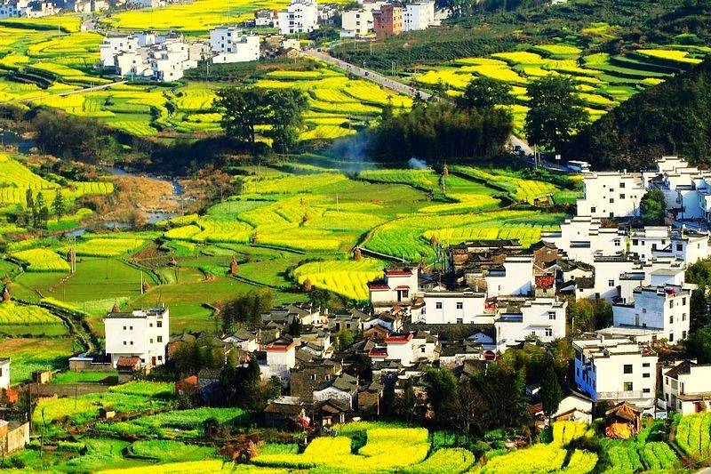 “油菜花季”在一片金黃色梯田間,“黑瓦白牆”的徽派民居,十分壯觀。每逢三月中下旬,油菜花盛開,景象十分壯觀,值得一看。