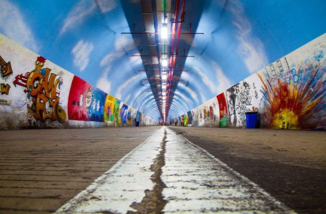 在廈大,芙蓉隧道是最具特色的景點。一公里長的隧道兩旁畫滿了富有創意的塗鴉作品。一批批廈大學子在這裡留下了他們青春的回憶。這張照片記錄了一個個年輕的故事和片段。不只牆上,狹窄的隧道在夏天很涼爽,也不乏休息納涼的好地方。