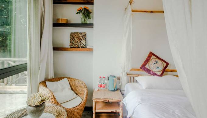 “山與流年別院”房間約31平米,陽臺約3平米,簡約明快的裝修風格,全落地玻璃滑拉門,更能欣賞山裡的美景。首層的玻璃房間可供曬太陽和喝下午茶。旅店的“四季廚房”也提供了一些美味的私家菜餚。位置也很方便,位於重慶市南岸區南山公園路李家坡,南山公園路上可到達南山植物園、黃山風景區、老君洞、黃桷埡、火鍋一條街等。