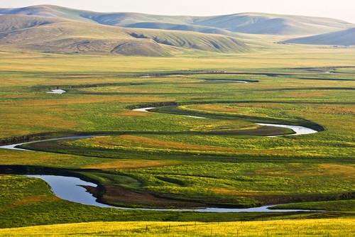 莫爾格勒河,又名莫日格勒河,號稱“天下第一曲水”。它是由一些湧泉聚集而成,河道十分狹窄,河流千迴百轉,宛若飄落草原上的柔軟綢帶。在呼倫貝爾草原上,它是一大奇觀。從上空俯瞰,莫爾格勒河水流如藍綢帶一樣曲折無比,蜿蜒前行,南北東西,彎曲程度可謂九曲十八彎。即使在汛期,它最寬處也不超過五六米。因為它所流經的區域多為荒山野嶺、人煙稀少的草原,所以莫爾格勒河水質清澈,是一條未受汙染的河流。