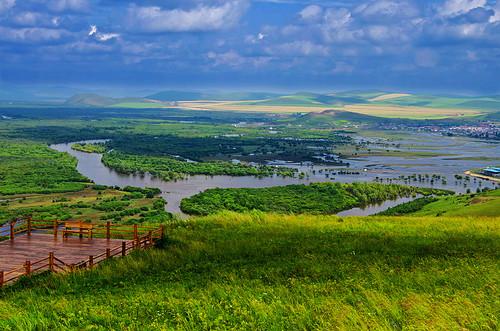 該溼地是中國目前保存最完好、面積最大的溼地之一,備受攝影愛好者歡迎。遊覽景區,可以欣賞到廣闊的灌叢草甸和無盡的視野。這裡的野生動植物非常豐富,而且是世界上最重要的丹頂鶴繁殖地之一。