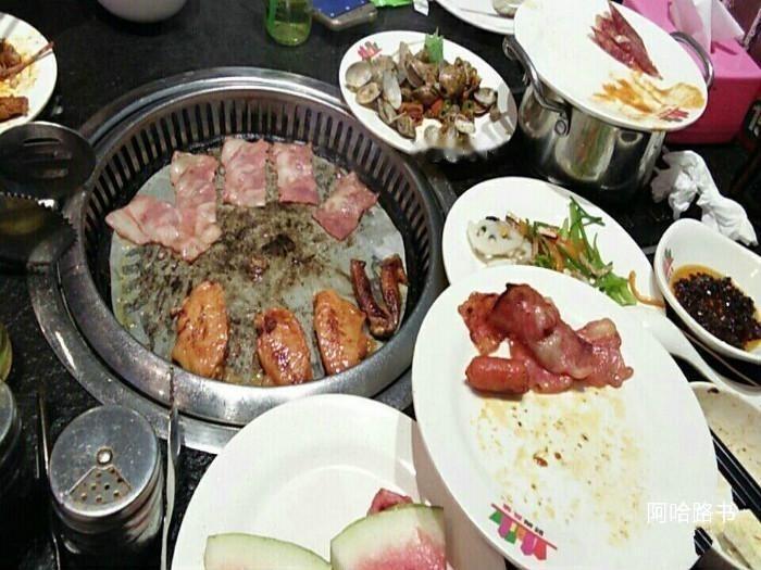 種類很多,有火鍋、烤肉、熟菜、甜品、小吃,當然肯定少不了飲料和冰淇淋。味道也還不錯,肉類和丸類挺好吃的,海鮮也很乾淨,美中不足就是調料能多一點更好了。可能因為烤肉的原因,店裡有點熱。服務員熱情很及時。總體來說還是個值得一去的好地方。