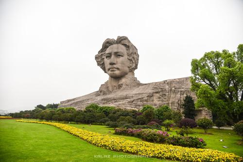 位於公園中央的漢白玉碑刻有毛澤東手寫的“橘子洲頭”字樣,背面則刻有《沁園春·長沙》的全文。